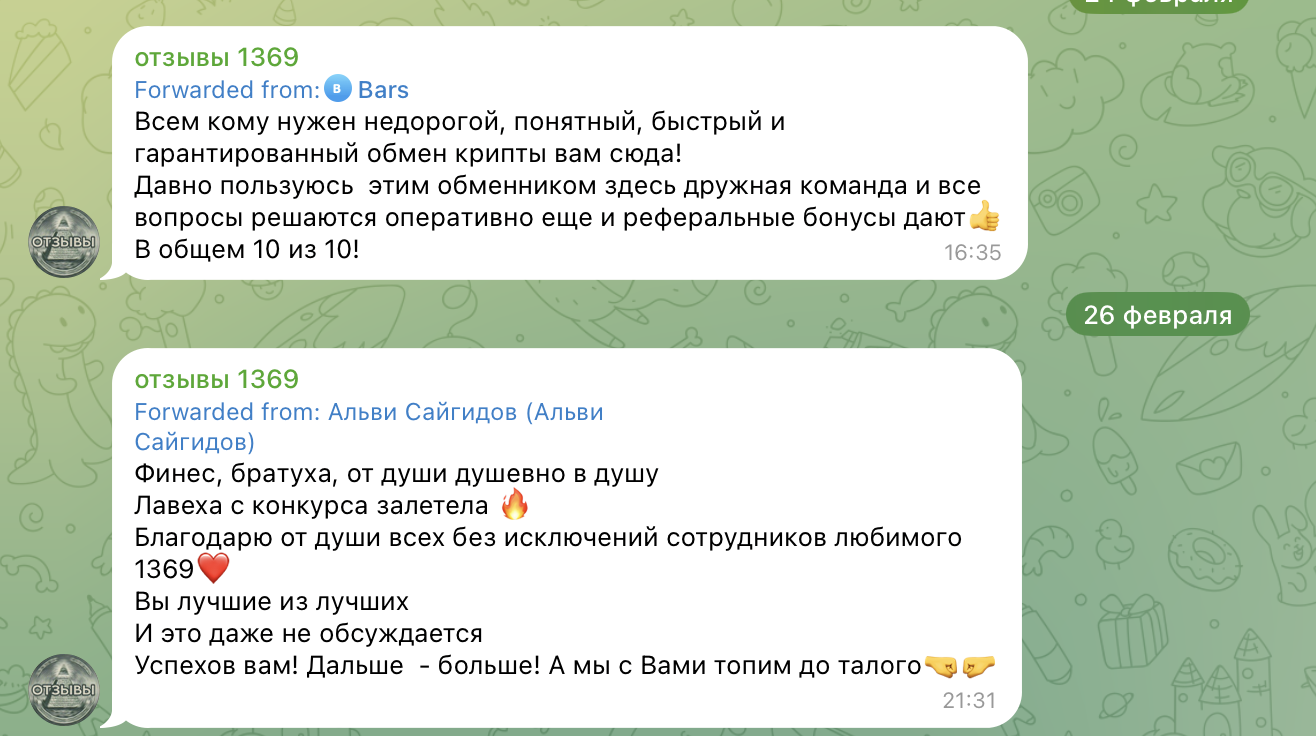 Обменник 1369: отзывы клиентов в сети, обзор работы сервиса Sup1369Bot