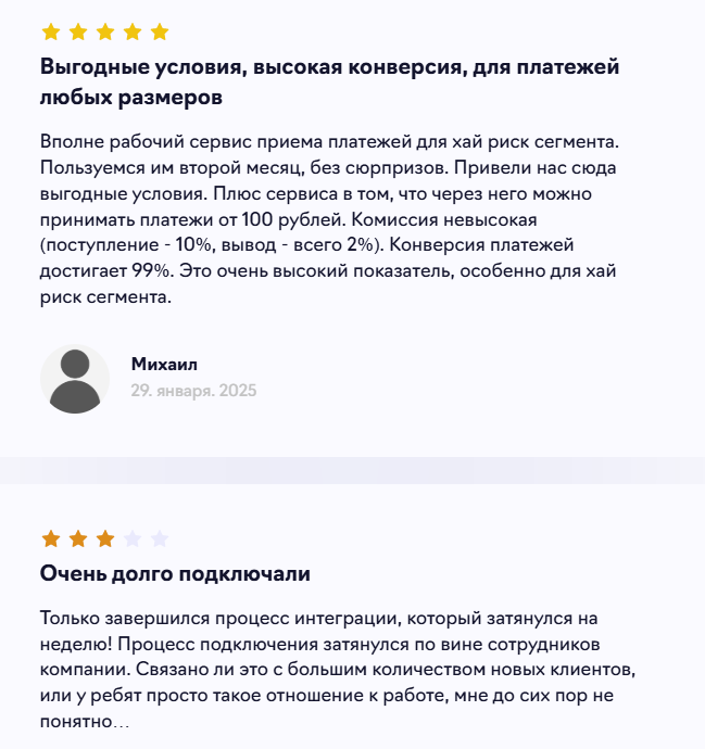 Сервис обещает высокую конверсию и быструю обработку платежей, но на деле сталкиваешься с блокировками без объяснений и задержками выплат. Отсутствие прозрачности и ненадёжная поддержка делают его сомнительным выбором для бизнеса.