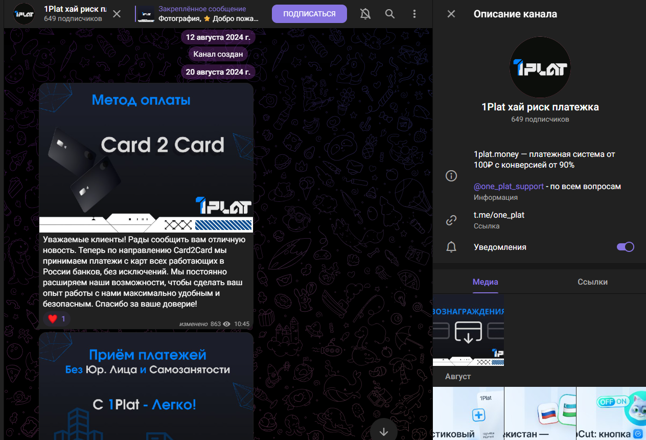 Обзор телеграмм-канала «1Plat хай риск платежка»: отзывы подписчиков, анализ возможностей платёжной системы «1 Плат Кэш»