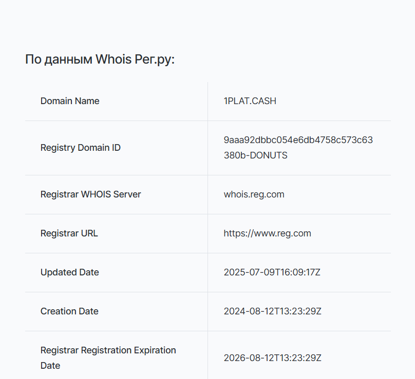 Отсутствие юридической информации и прозрачности в деятельности 1Plat Cash вызывает серьезные сомнения в надежности этого проекта. Без четких данных о компании и ее руководстве доверять свои средства такому сервису крайне рискованно.