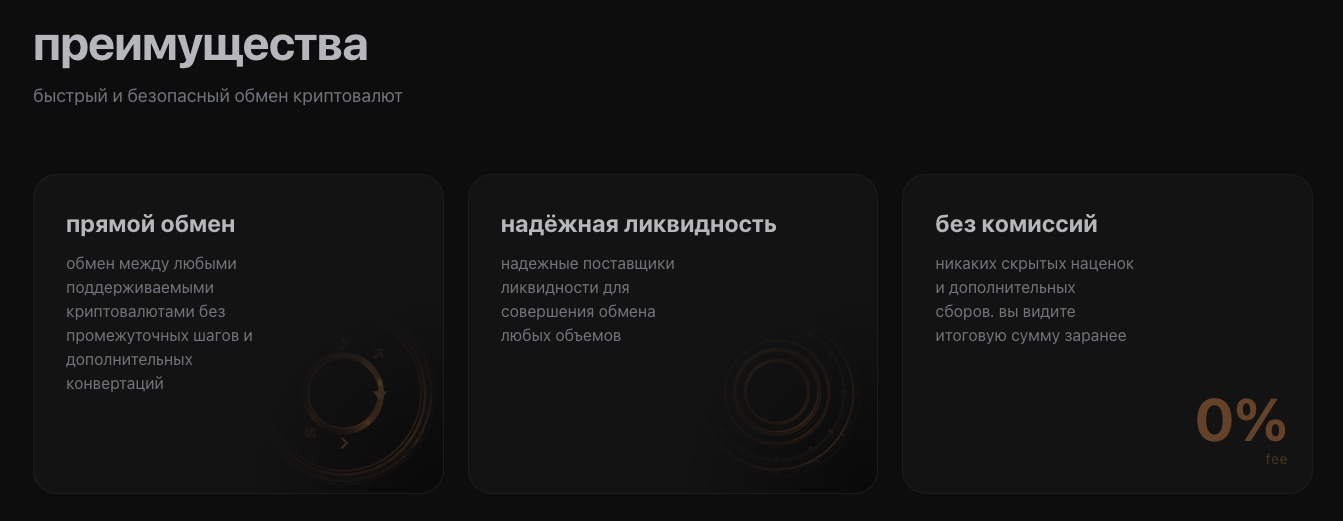 Предлагаются услуги обмена криптовалют без комиссий.