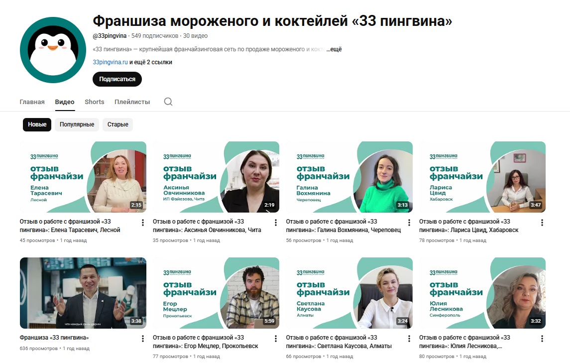 На YouTube есть канал с отзывами реальных предпринимателей из разных городов. Канал ведётся формально, публикуются видеоотзывы и короткие новости. Просмотров у видео немного — от 30 до 80 за год. Канал не раскручивается и не привлекает новую аудиторию.
