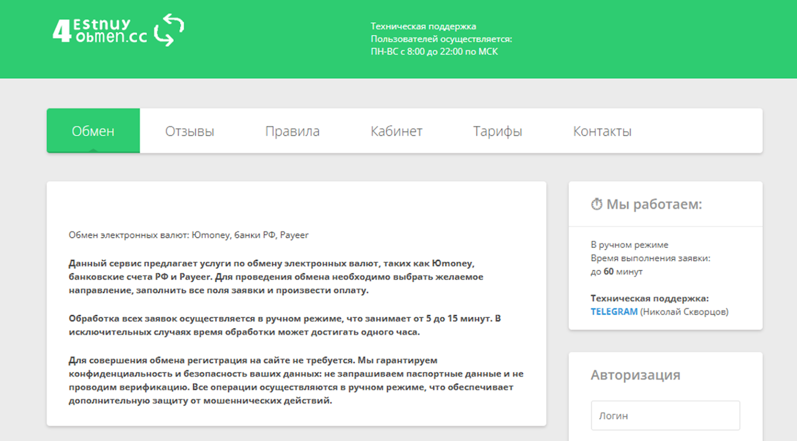 4estnuy obmen ru – обменник электронных валют, который ранее пользовался большой популярностью у пользователей. Как на данный момент работает сервис и стоит ли им пользоваться, расскажем в новом обзоре.