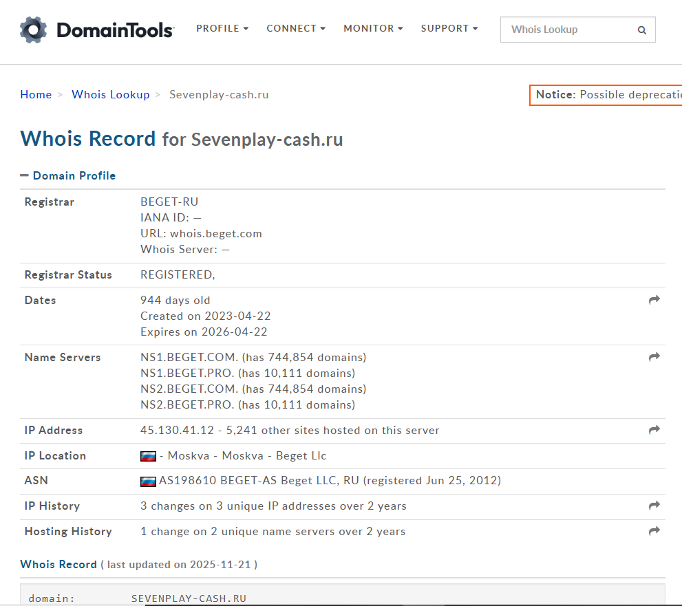 Но прямой связи между этим сайтом и Seven Play Cash нет: разные домены, разные регистрационные данные, разный хостинг и страны. Совпадает только часть названия, но это никак не доказывает, что проекты связаны. Однако такое сходство все равно создает риски путаницы и вводит игроков в заблуждение, будто это одна и та же экосистема.