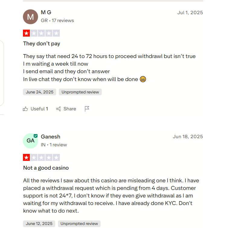 Существуют отзывы о другом проекте с похожим названием, но это сайт онлайн-казино. Пользователи жалуются на задержки выплат, низкий RTP, плохой саппорт, однако прямой связи между проектами нет.