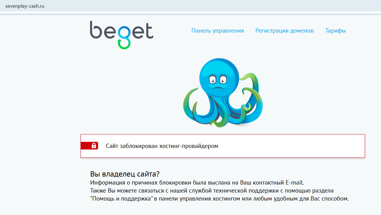 Блокировка сайта Seven play Cash Ru, отсутствие отзывов и следов живого сообщества подтверждают, что проект не развивается, не поддерживается и никак не взаимодействует с игроками.