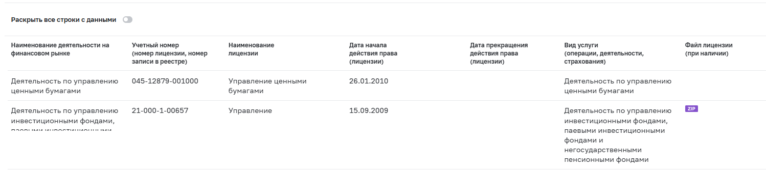 У компании две лицензии ЦБ. Первая на управление ценными бумагами с 26 января 2010 года. Вторая на работу с инвестфондами с 15 сентября 2009-го. Обе бессрочные. Центробанк контролирует деятельность.