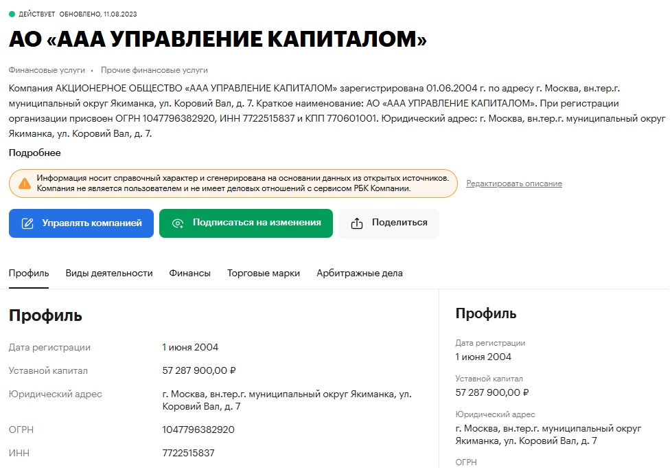 Что известно об АО «ААА Управление Капиталом»