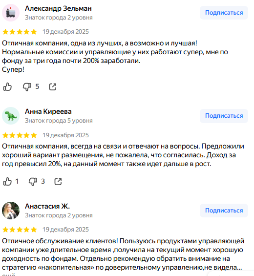 На Яндекс Картах 100 отзывов со средней 4,1 балла. Положительных отзывов от клиентов «ААА Управление Капиталом» больше. Хвалят обслуживание и прибыль. Кто-то получил почти 200% за три года. Другие заработали больше 20% за год. Но негатив тоже есть. Предупреждают о рисках потери средств. Один клиент за месяц потерял 67 тысяч рублей.