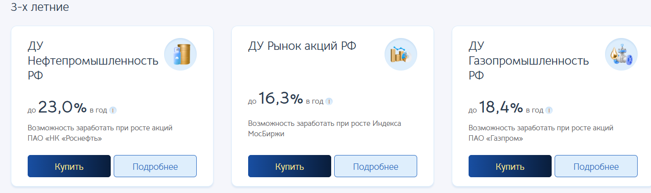 Розничные стратегии обещают сохранность вложенной суммы к концу срока. Период 1202 или 1570 дней. «ДУ Нефтепромышленность РФ» дает до 23% в год. «ДУ Финансовый сектор РФ» – до 19,4%.