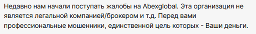 Также есть отзывы об AbexGlobal со стороны мониторингов. По словам экспертов количество жалоб на эту платформу увеличивается. Проведенные проверки показывают, что брокер нелегальный, его цель – деньги клиентов.