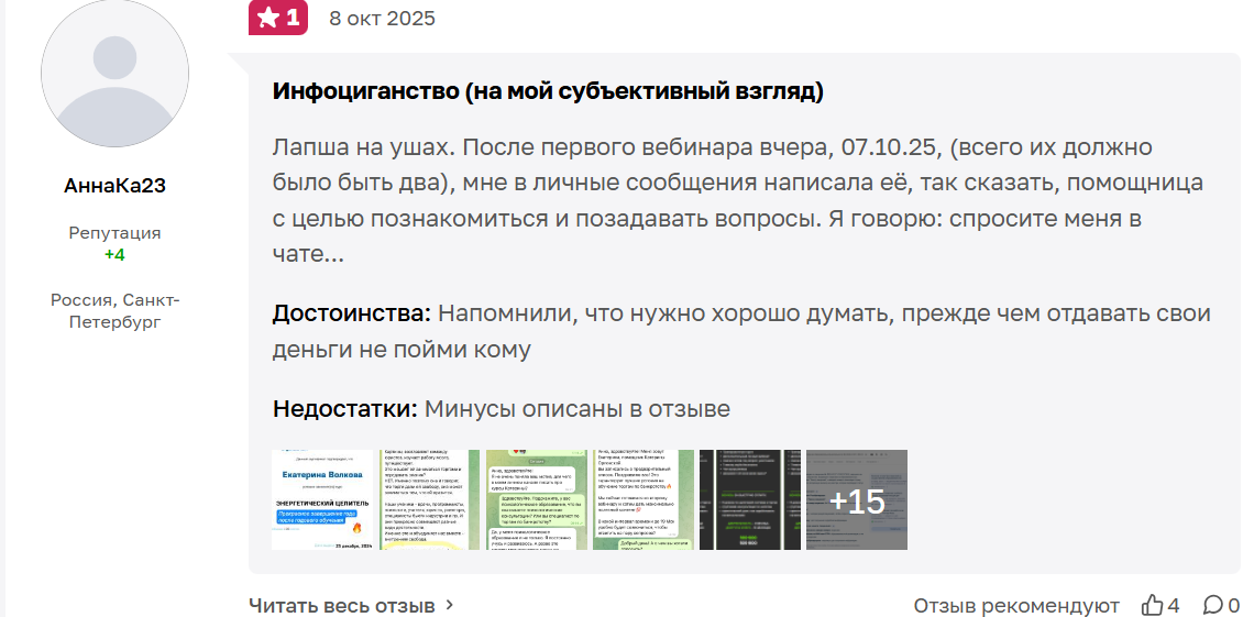 Высокая стоимость курсов Екатерины Орловской вызывает сомнения в их ценности, особенно учитывая, что занятия проходят в записи без возможности задать вопросы. Негативные отзывы и подозрения в накрутке положительных комментариев лишь усиливают недоверие к проекту.