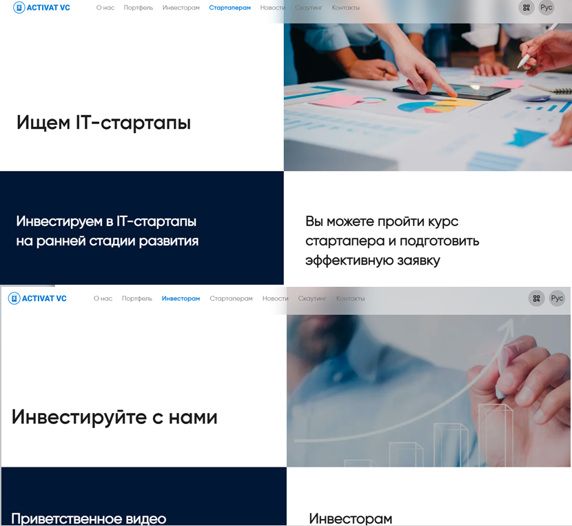 На сайте Activat Vc указано 30 стартапов, среди которых финтех платформы, маркетплейсы, сервисы для ритейла и пр. Цифр по доходности и процентам прибыли компания не показывает.