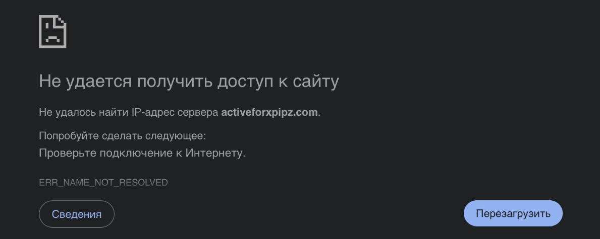 - нерабочий сайт;