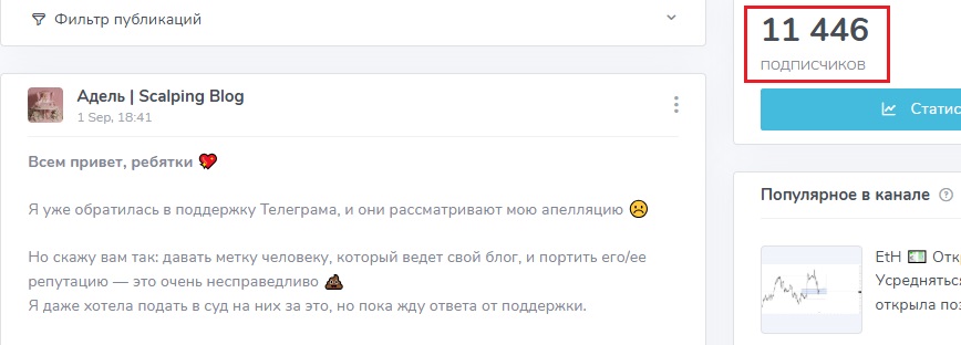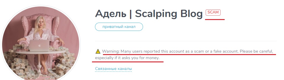 В процессе анализа данного канала с помощью различных сервисов выяснилось, что у некоторых проектов по разоблачению мошенников паблик «Адель Скальпинг Блог» находится в черном списке. Один из таких проектов заявляет, что в связи с множественными негативными откликами трейдер Адель и его «детище» – это откровенный скам.