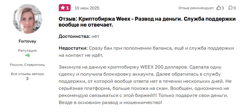 Однако репутация у рекламируемой ею платформы крайне мутная. А некоторые очевидцы и вовсе обвиняют «Weex» в обмане. Пострадавшая утверждает, что ее торговый счет был заблокирован биржей сразу после внесения депозита. Реклама трейдерами подобных мошеннических сайтов вызывает сильное недоверие.