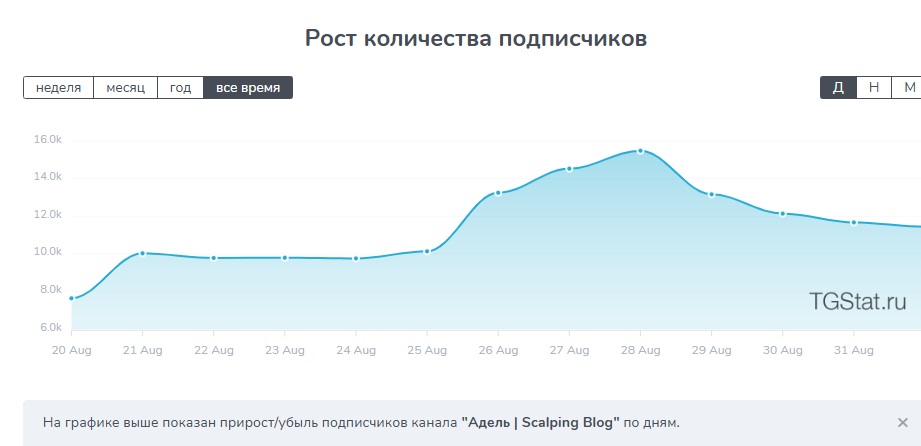 Во-вторых, динамика роста подписчиков на протяжении всего периода существования проекта выглядит довольно странно. На графике видно, что в определенные моменты происходит резкое увеличение аудитории, после чего сразу случается спад. Данный маркер свидетельствует о том, что автор пытается привлечь живую аудиторию. Но люди быстро догадываются о мошеннических намерениях проекта и отписываются.