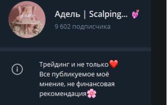 Обзор трейдера Адель Scalping Blog: отзывы и анализ тг-канала Adelka Trade