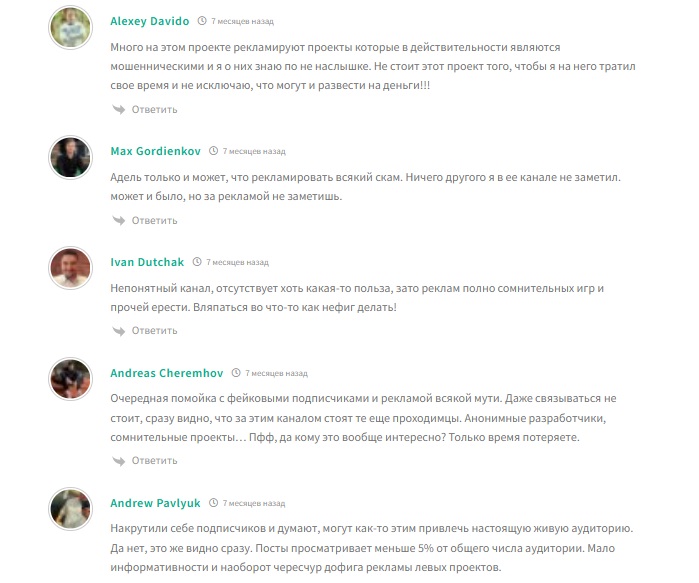 В сети об Адель Крипта отзывов немного. Основное, что отмечают пользователи — продвижение сомнительных проектов и отсутствие прозрачной статистики торговли.