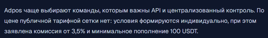 Также сказано, что «Адпос» предлагает индивидуальные условия, поэтому все зависит от размера команды и ее целей.