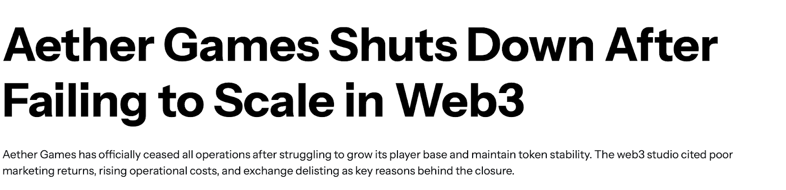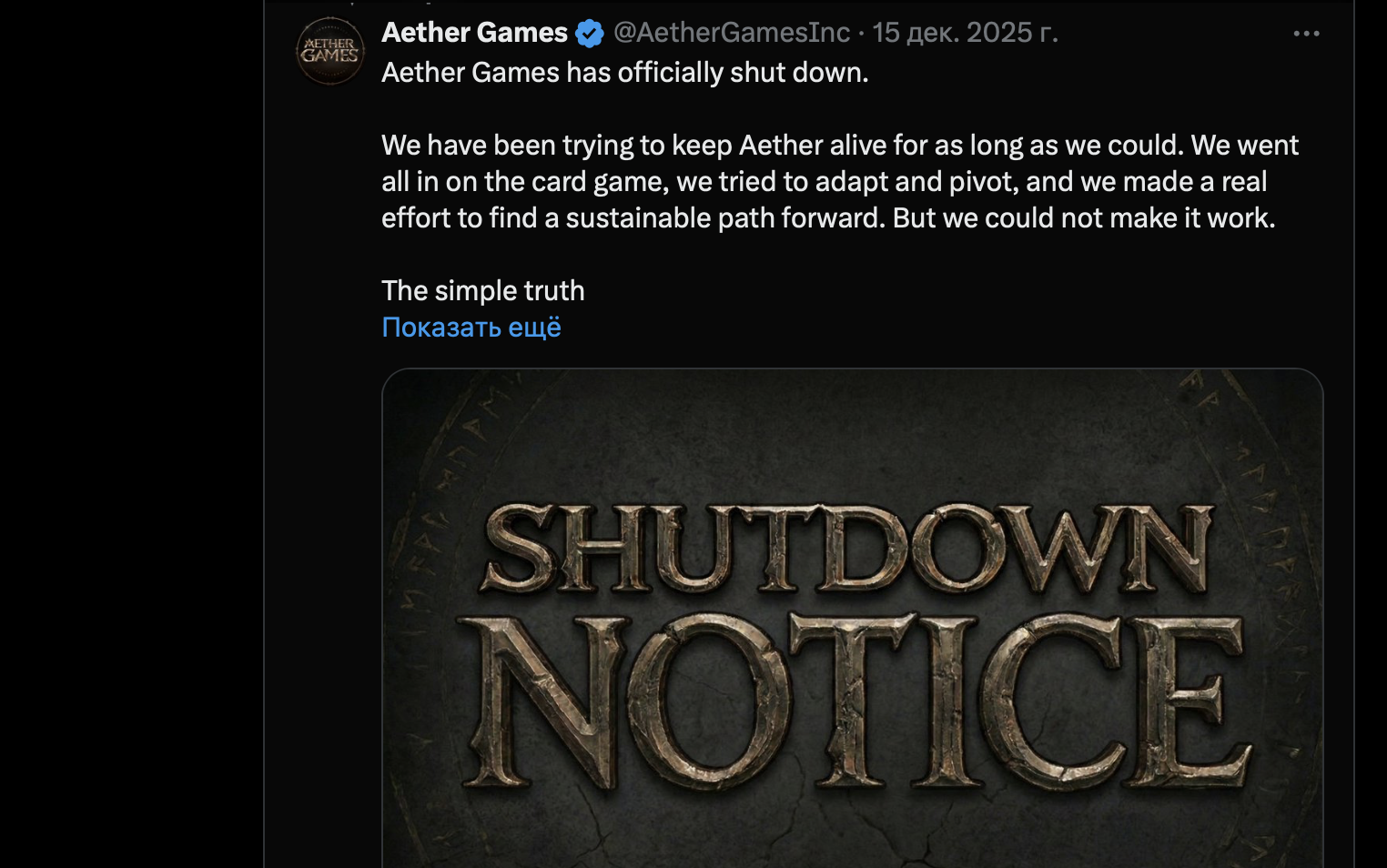 Официальный портал aethergames.com уже не активен: домен свободен и висит на продаже. В соцсетях проекте Aether Games Inc последние публикации посвящены сообщению о закрытии платформы.
