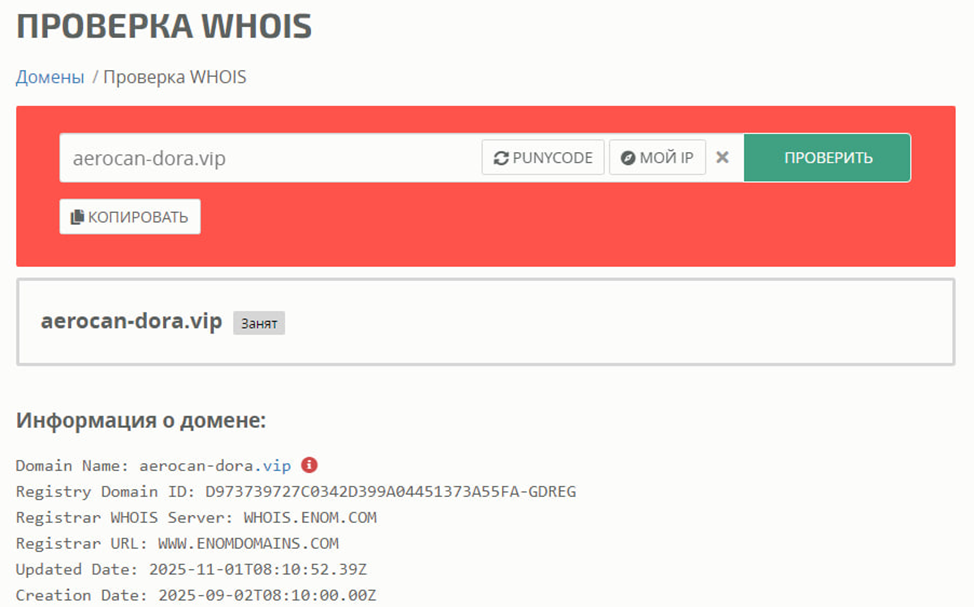 На сайте Aerocandora не указывается, какой стаж имеет брокер. Но проверка домена показала, что адрес зарегистрирован в сентябре 2025 года. А обозреваемая площадка начала управлять с этого адреса в ноябре 2025 года. То есть, на момент обзора не прошел даже месяц. Доверять малоработающей и малоизвестной платформе опасно. Так как, она новая и все еще не проверена до конца, присутствует множество рисков. Также свежий домен может свидетельствовать о том, что брокер мог поменять адрес. Тогда это уже является мошеннической деятельностью.