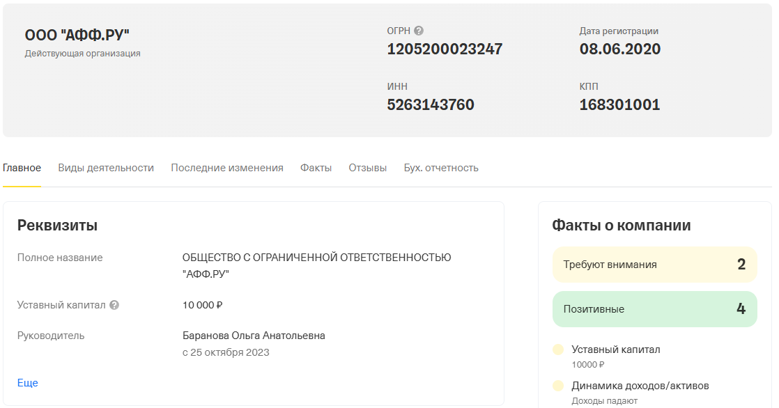 Сервис Aff ru обещает золотые горы, а на деле уставный капитал в 10 тысяч рублей и выручка падает. Похоже на очередной развод для доверчивых.