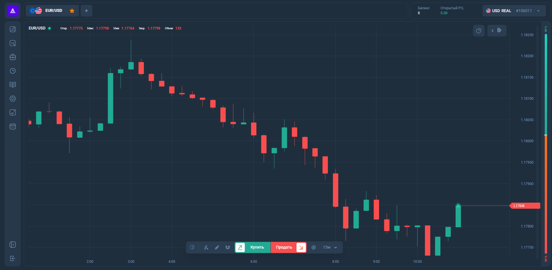Вот только терминал состоит всего из нескольких кнопок, он не кажется адаптивным и плохо подходит для профессиональных сделок. Не исключаем, что график ненастоящий, а руководство платформы может вручную подстраивать сделки, «рисуя» доходы конкретных клиентов, как это часто встречается в мошеннических схемах.
