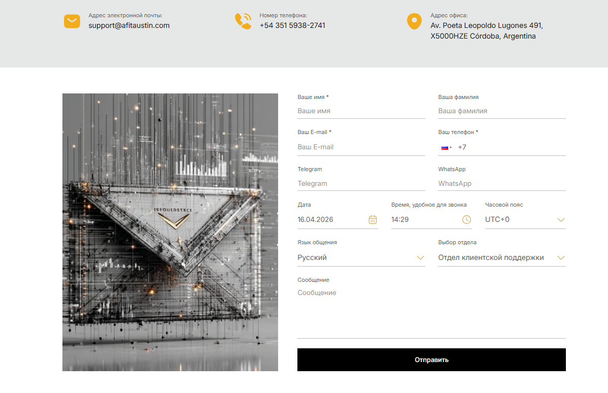 Afitaustin com – это финансовый брокер, предлагающий клиентам доступ к торговле на валютных и других рынках через надежный терминал. Компания якобы работает по всему миру и уже много лет сотрудничает с трейдерами, но при оценке проекта обнаруживается немало подозрительных моментов.