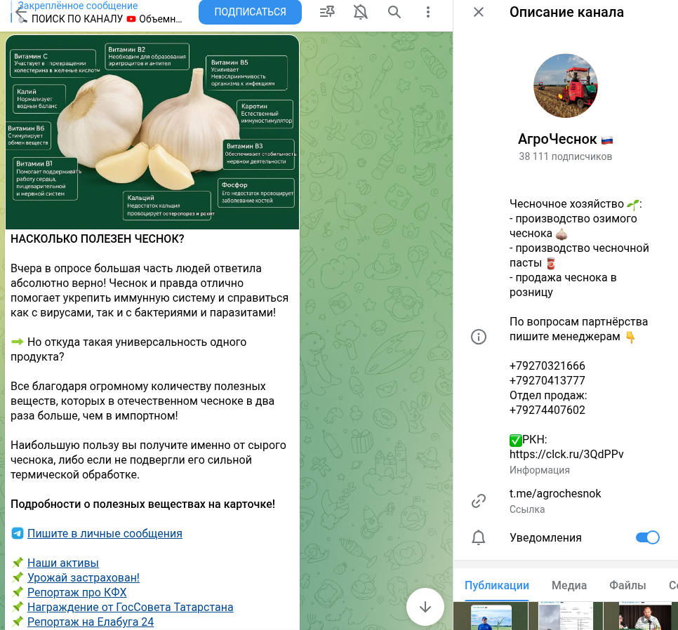 Но в ТГ есть несколько каналов-копий Агрочеснока. Кому они принадлежат — официальной компании или мошенникам, неизвестно: