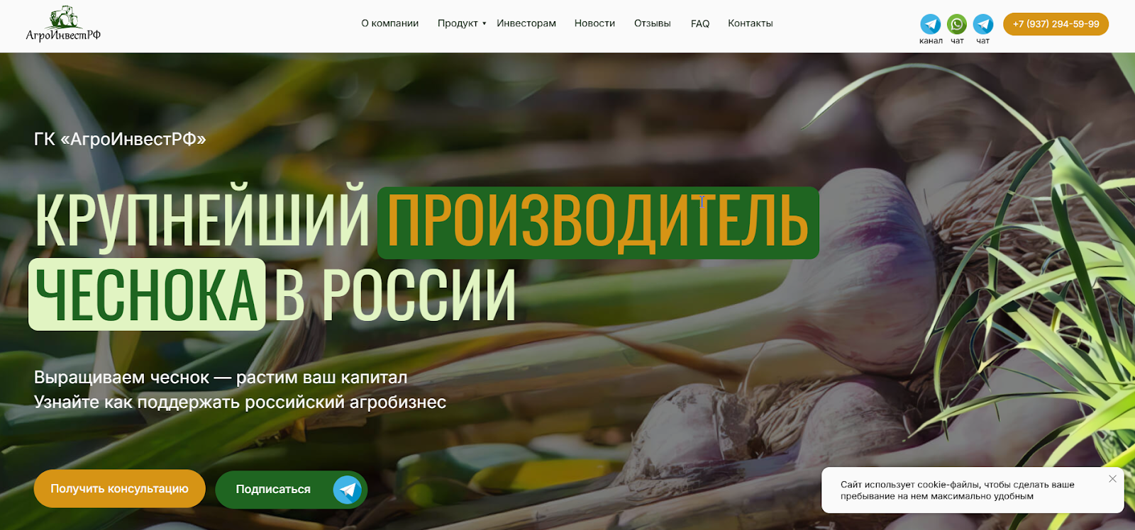 Конкретные цифры и факты про инвестиции в Агрочеснок и отзывы нужно искать на сайте компании agroinvestrf ru. На февраль 2026 года он не работает. Но Вебархив все помнит: