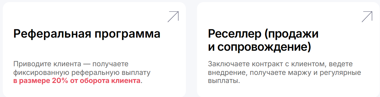 У проекта есть реферальная программа с вознаграждением 20% от оборота рефералов. Также можно стать представителем компании, самостоятельно заключая договор с клиентом и подключая роботов. За это выплаты больше, но точные расценки не указаны.