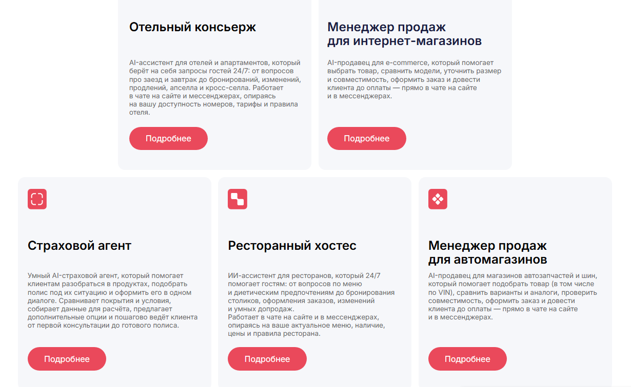 Разработчики предлагают индивидуальные решения для клиентов, но есть и готовые ИИ-ассистенты:
