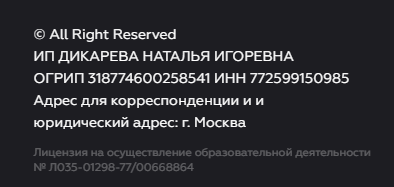 На сайте мы не видим никаких юридических документов. Скорее всего, Шахман работает нелегально, ее деятельность никто не контролирует и не регулирует. Хотя она и указала номер своей лицензии на ведение образовательной деятельности, но найти ее на сайте Минобрнауки невозможно. Похоже, в реальности данное разрешение отсутствует.