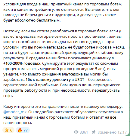 Сам трейдер Килов не обладает положительной репутацией и известным участником трейдинг сообщества не является. Анонимный пользователь просто решил разводить доверчивых фолловеров на деньги, предоставляя им платные услуги сомнительного содержания. Никаких доказательств того, что юзер с ником «Модер МК» умеет торговать криптой, нет. Верифицированная статистика по валютным транзакциям автора сообщества отсутствует в ленте.