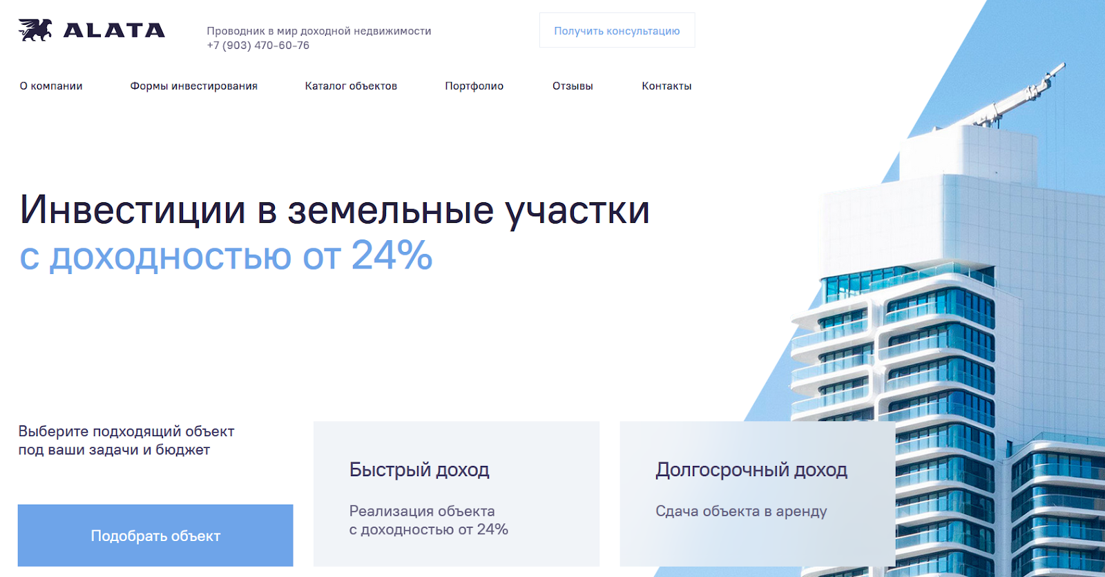 Инвестиции в Alata начинаются с 1.9 миллиона рублей при средней доходности 48% годовых. Сообщается об уже более 600 успешно реализованных объектов, но конкретных подтверждений этому не предоставляется.