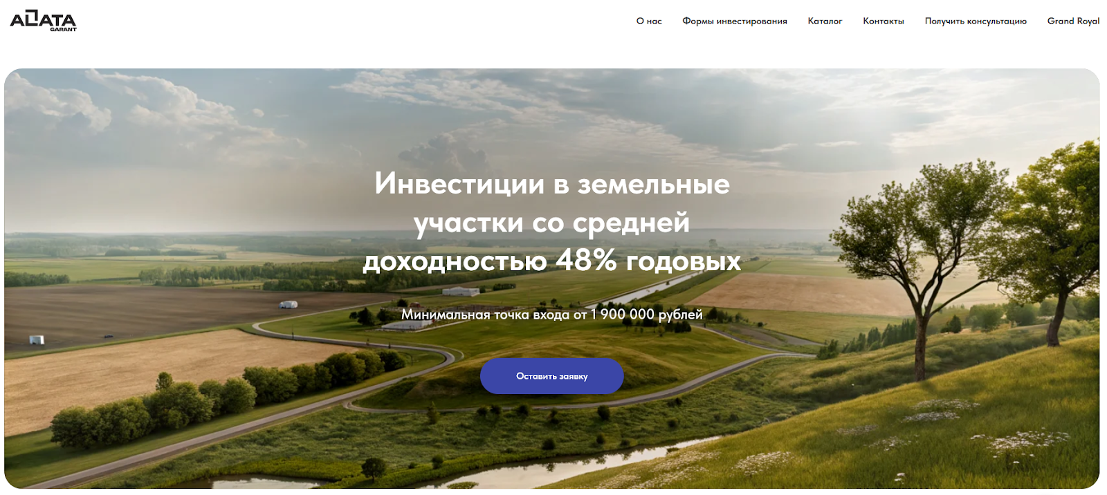 Алата Гарант предлагает свои услуги на сайте Alata Garant Ru. Работает платформа с объектами недвижимости, при вложении в которые обещают прибыль. По словам компании достигается она за счет развития инфраструктуры и реализации отдельных участков в крупных объектах.