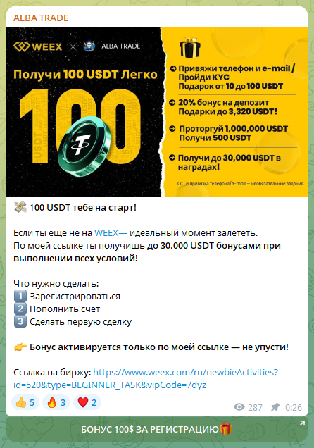 Администратор зарабатывает на реферальной программе проекта. Он не выбрал популярные ByBit и Binance, потому что там очень строго работают с клиентами. А вот WEEX платит огромные деньги за привлечение каждого пользователя.