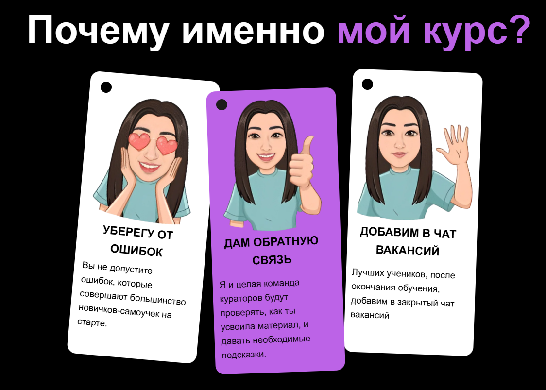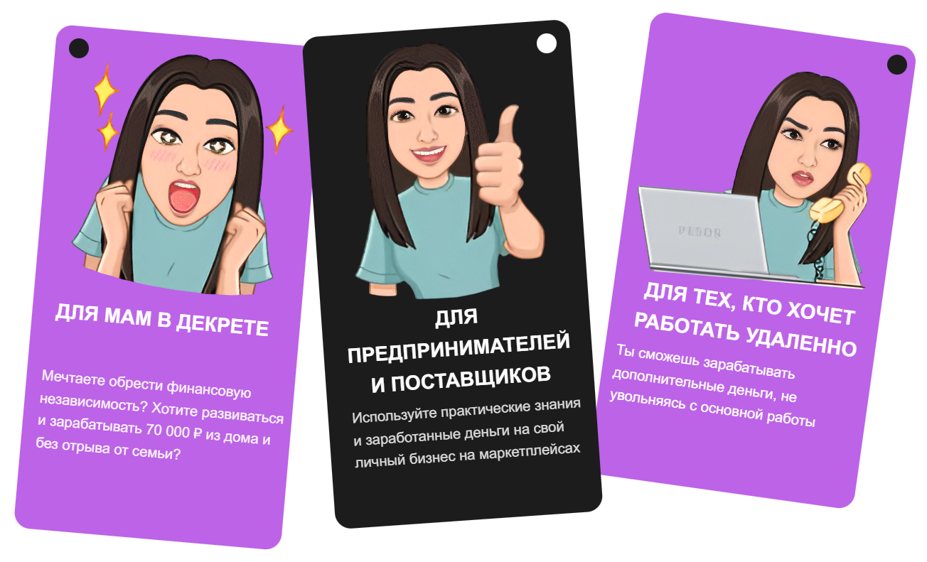 При старте заработка на маркетплейсах Александра Чечетова обещает уберечь учеников от распространенных ошибок, предоставить исчерпывающую обратную связь и добавить в чат с актуальными вакансиями.
