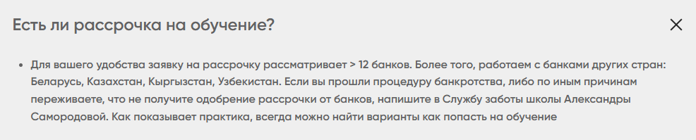 - у школы Александры Самородовой есть лицензия, что снижает вероятность скама при прохождении обучения;