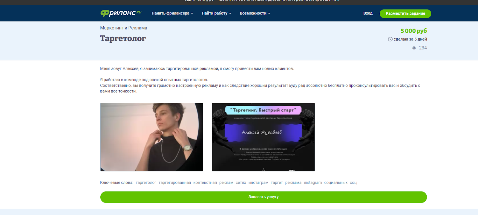 Предположим, что перед нами действительно талантливый молодой человек, который смог за четыре года освоить несколько профессий. Но, судя по рекламным объявлениям на «Фриланс.ру», Журавлев работал в какой-то команде маркетологов и соглашался раскрутить проект всего за 5 000 рублей.