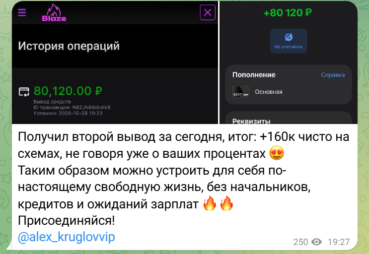 В Телеграм проекте Александр Круглов приват ведущий дает ссылку на казино Blaze Casino. Это свежий проект и откликов в сети о нем практически нет, не учитывая купленные шаблонные отзывы. По сути это очередной бот-пустышка для кражи средств, только под новым названием.