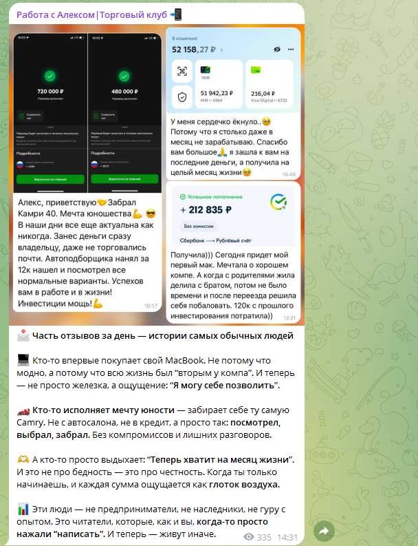 Отзывы о канале «Работа с Алексом | Торговый клуб»