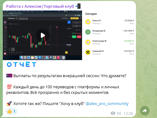 Обзор на телеграм-канал трейдера «Работа с Алексом | Торговый клуб»: отзывы о торговле на бирже вместе с Alex Pro Community и анализ платных услуг инвестора Александра Бойкова