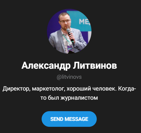 Телеграмм-канал Александра Литвинова запустили в 2022 году. Он называет себя интернет-маркетологом, который в прошлом был журналистом. По легенде, он специализируется на Телеграмме, запускает свои каналы для продажи рекламы, владеет агентством и онлайн-школой.