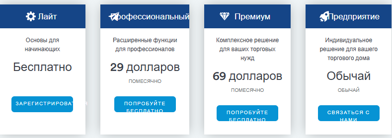 - Премиум тариф. Это комплексное решение для торговых нужд. Предложение начинается от $69 долларов в месяц. Набор услуг включает неограниченное количество алгоритмов и сканеров. Есть также автоматические помощники за дополнительную плату.