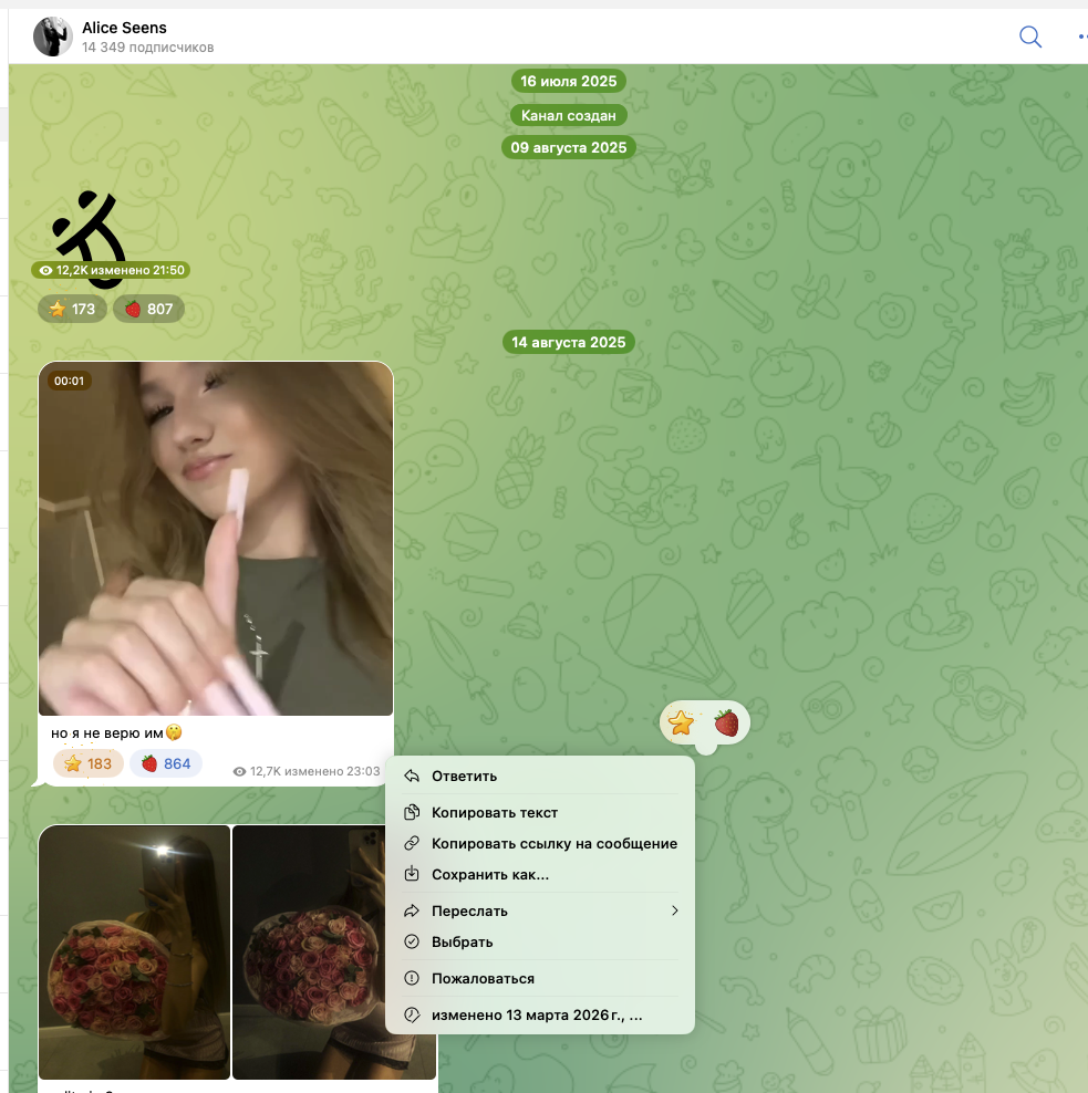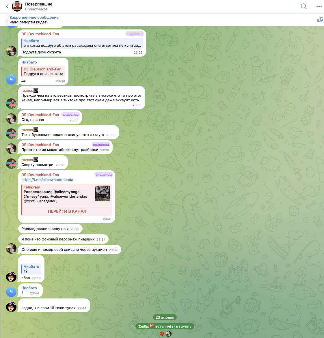 В ходе обзора мы показали, что канал aliceadventuree и аккаунт alicewonderlandas связаны с мошенничеством. Теперь админ работает через другое сообщество, которое, судя по всему, удалят в ближайшие дни. Выделим основное: