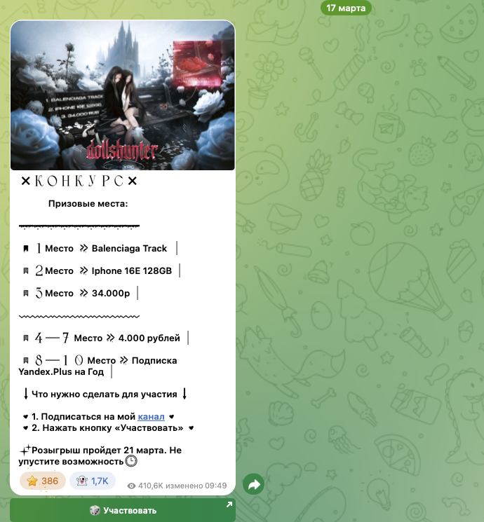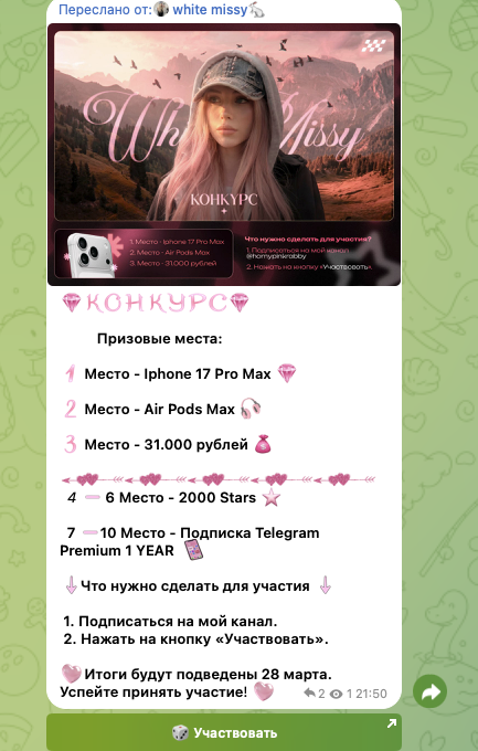 Aliceadventuree – сообщество в Телеграм, в котором проводились розыгрыши ценных призов и денег. Автор с ником alicewonderlandas предлагала всем желающим поучаствовать в розыгрыше без каких-то подводных камней. Нужно было просто нажать на кнопку «участвовать». Однако в конечном счете оказалось, что alicewonderlandas – скам. Создатели проекта использовали схему, которая активно начала работать в 2026 году. О ней расскажем подробнее.