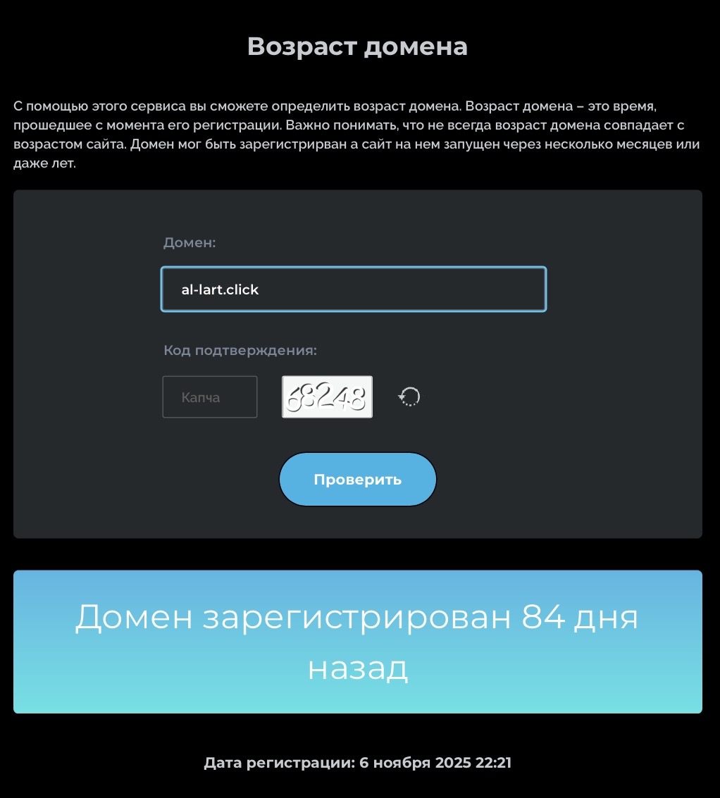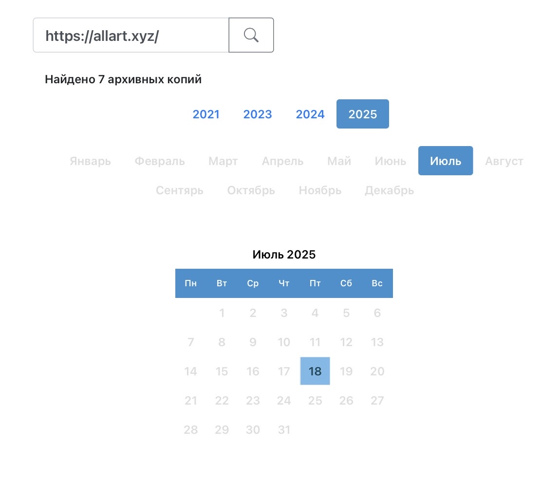 Основной сайт Аllart xyz зарегистрирован около 4 лет назад. По данным сервиса Web Archive, последняя передача домена была в июле 2025 года.
