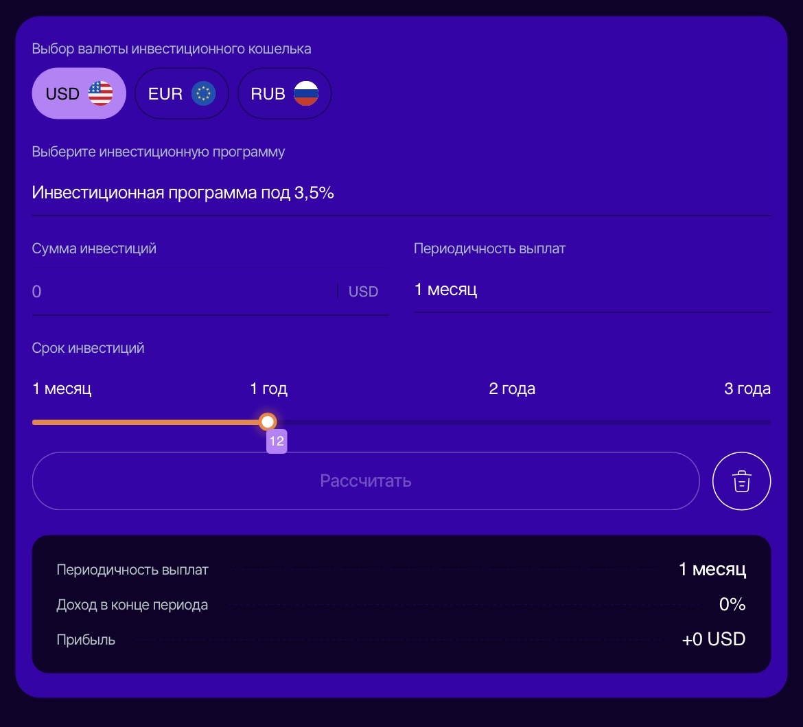 На сайте также представлен калькулятор доходности. Это инструмент, позволяющий потенциальному инвестору рассчитать ожидаемую прибыль.
